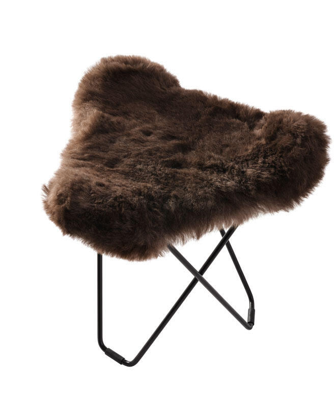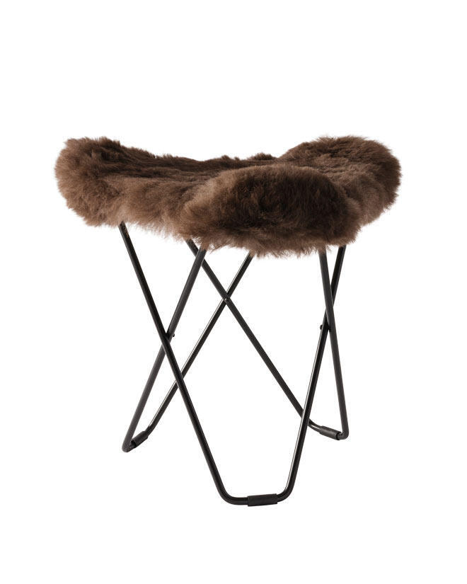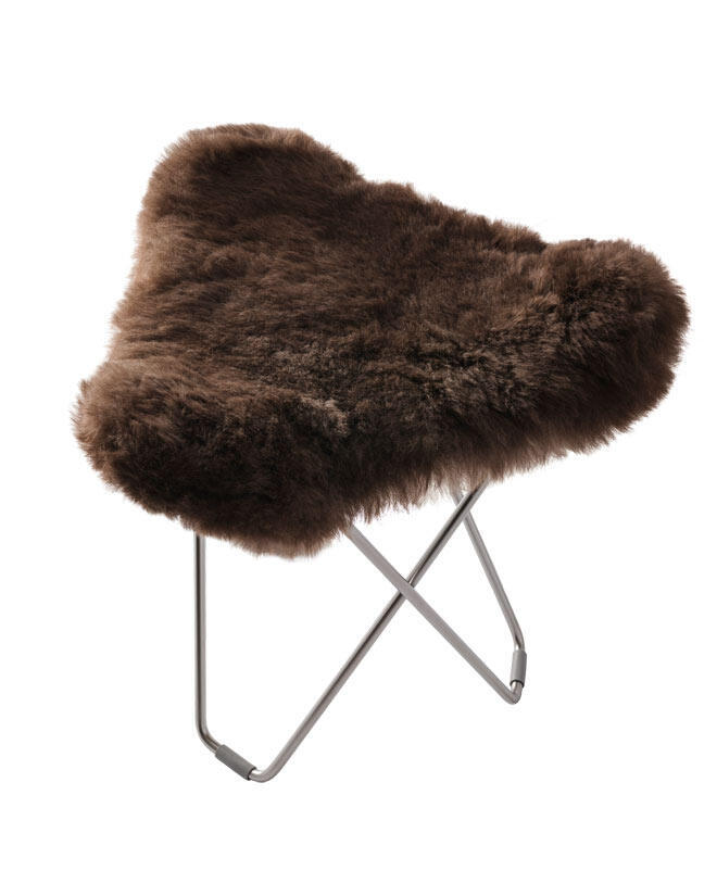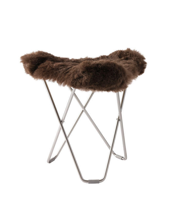 Iceland Flying Goose finns i flera fina färger av äkta naturfärgat isländskt lammskinn och även i tjockt italienskt läder, alla levereras med svartlackerat eller mattkromat solitt svenskt stål. Pallarna med en topp av läder hittar du en bit ner på sidan under liknande produkter med namnet "Pampa Flying Goose".