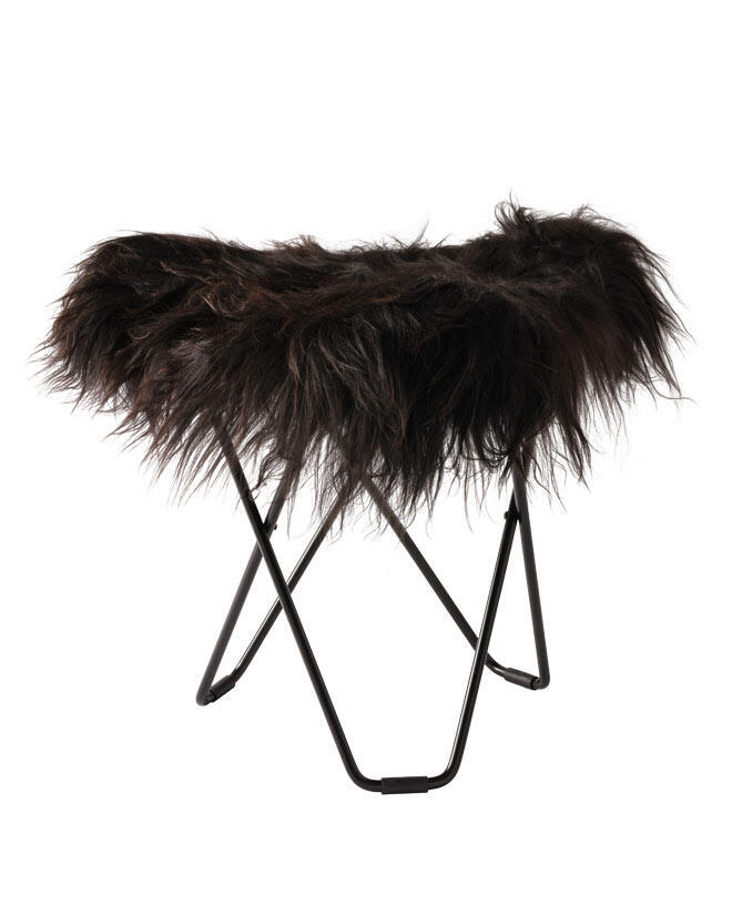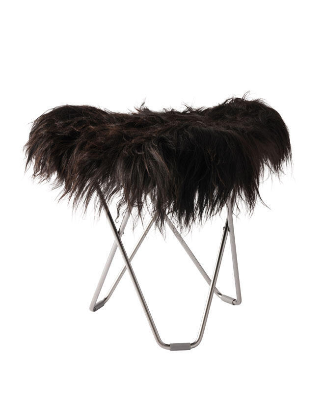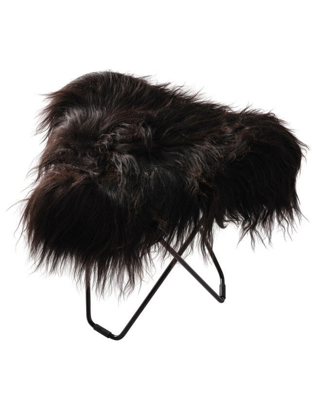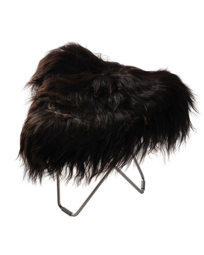 Iceland Flying Goose finns i flera fina färger av äkta naturfärgat isländskt lammskinn och även i tjockt italienskt läder, alla levereras med svartlackerat eller mattkromat solitt svenskt stål. Pallarna med en topp av läder hittar du en bit ner på sidan under liknande produkter med namnet "Pampa Flying Goose".