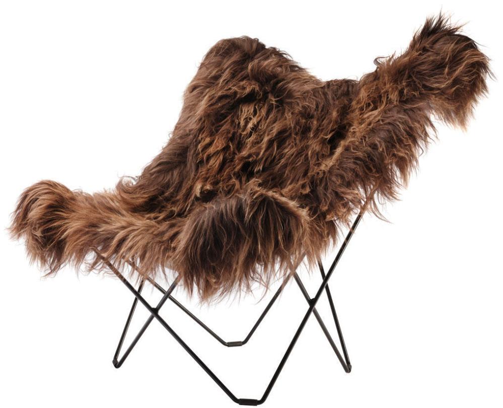 Den här modellen som heter "Iceland Mariposa" smyckas med äkta isländskt lammskinn av allra högsta kvalitet som färgats med ekologiska färgpigment. Fåtöljen kan även fås med annan klädsel så som i tjockt italienskt vegetabiliskt garvat läder, canvastyg av 100% bomull eller i ett extremt tåligt Sunbrella tyg som kan användas både inom- och utomhus. Välj den klädsel och underrede som passar dig och din stil i hemmet bäst, alla modeller finns en bit ner på sidan under liknande produkter.