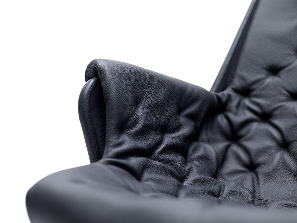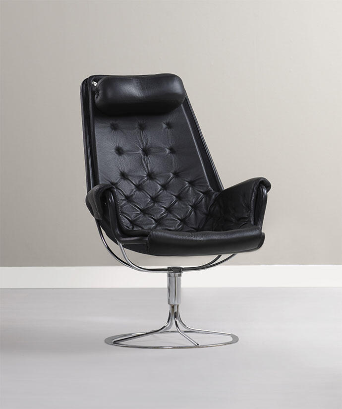 Jetson är en milstolpe i Bruno Mathssons produktionsprogram och har fått många efterföljare. Skålformad sits och hög ergonomiskt utformad rygg med nackkudde. Stativ med ett unikt minne, där stolen roterar tillbaka till sin ursprungliga position.