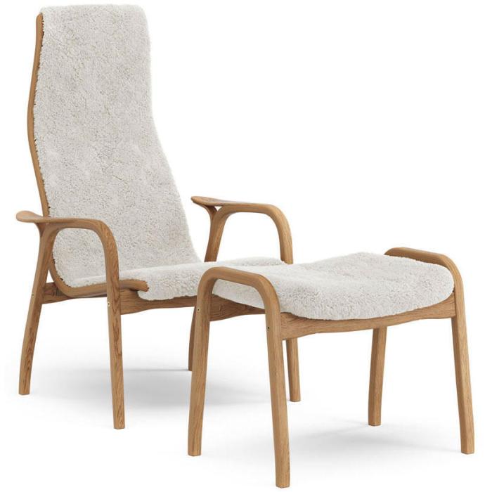 Lamino Oljad Ek Fårskinn Offwhite Fåtölj och fotpall