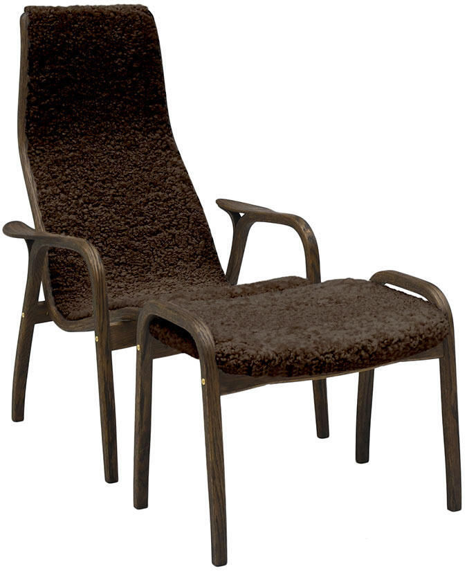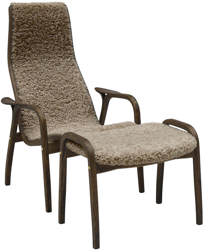 Lamino Rökt Oljad Ek Fårskinn Fåtölj, fotpall och bord