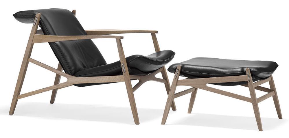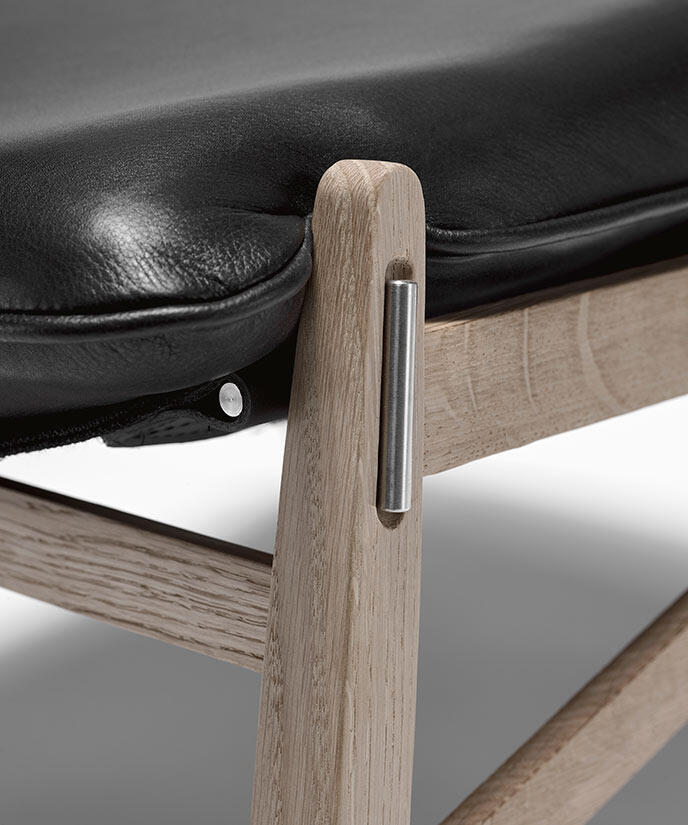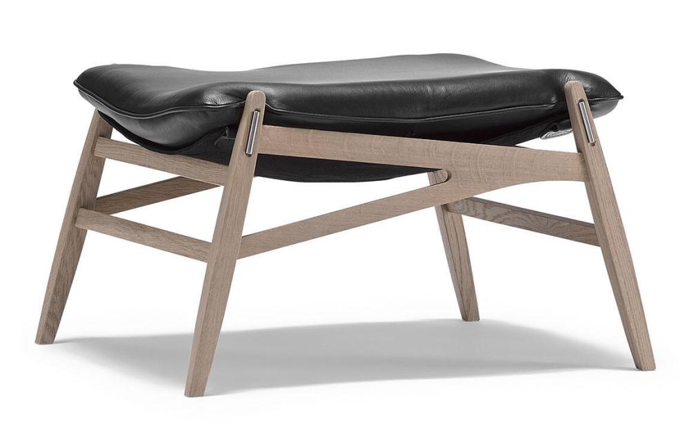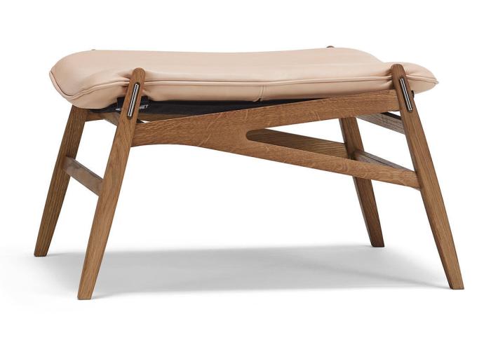 Fotpall till den oemotståndliga loungefåtöljen Link, tillverkad av svenska Stolab. Fåtöljpallen formgiven av Dan Ihreborn finns i oljad utförande av massiv ek med sittdyna i Elmotique läder eller vegetabiliskt garvat läder från Tärnsjö Garveri.