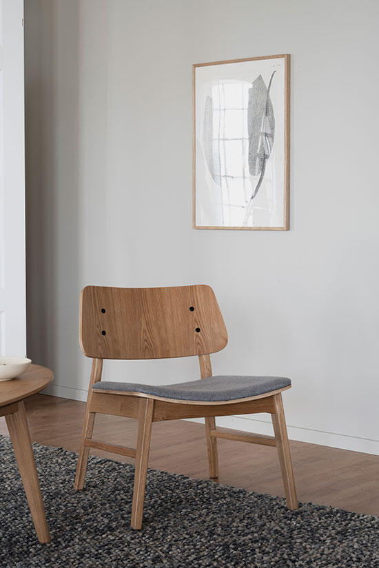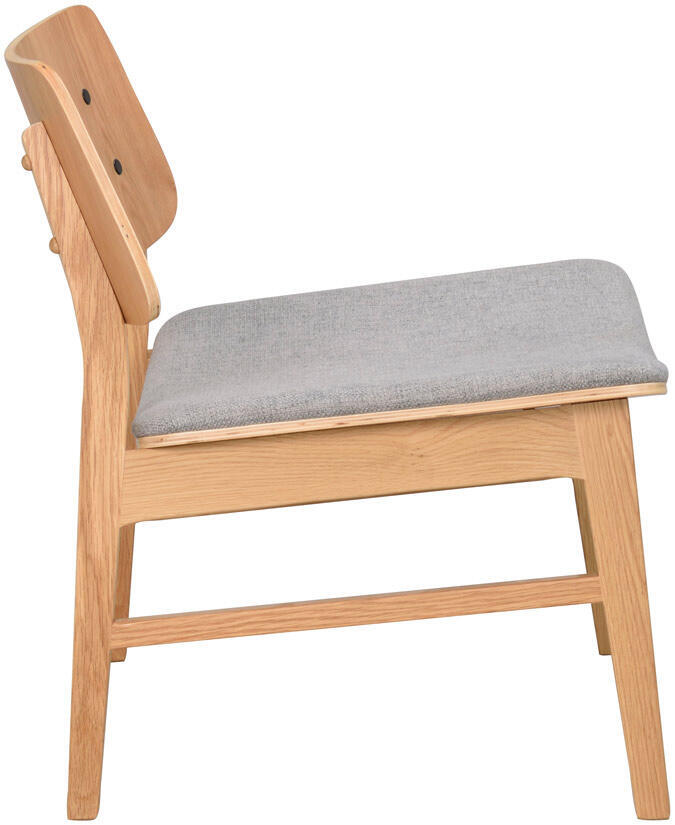 Nagano loungestol i massiv ek och med sits i ljusgrått tyg. En praktisk, komfortabel och stabil stol med fina arbetade detaljer. Trevlig att ha som udda stol i hallen, sovrummet eller vardagsrummet. Stolen ingår i serien Nagano som också finns som matstol i flera färgkombinationer. Du hittar den här.