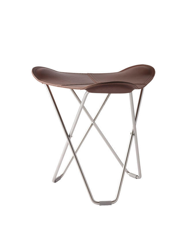 Pampa Flying Goose finns i flera fina färger av det vegetabiliskt garvade lädret från Italien och även i äkta isländskt lammskinn, alla levereras med svartlackerat eller mattkromat solitt svenskt stål. Pallarna med en topp av lammskinn hittar du en bit ner på sidan under liknande produkter med namnet "Iceland Flying Goose".