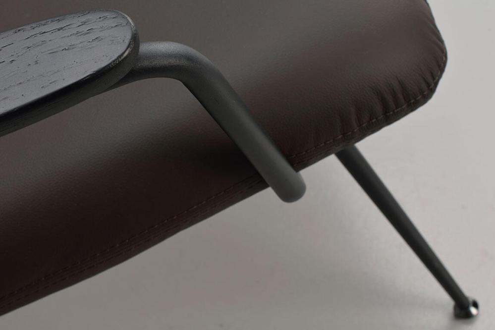 Stoppad sits och rygg, klädd med riktigt läder. Stomme i pulverlackad metall i sandstruktur, och armstöd i massiv ek ...