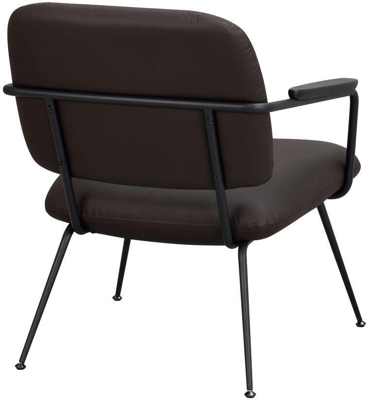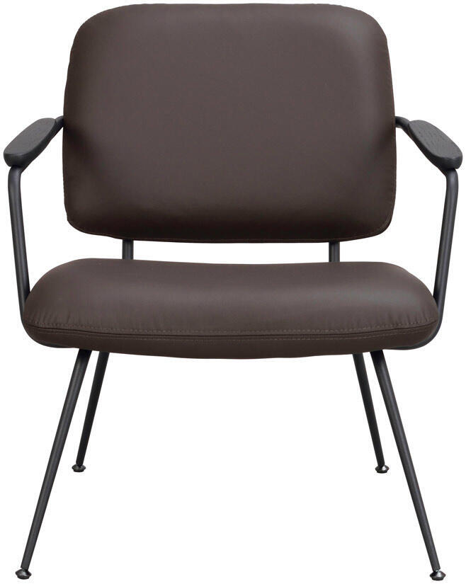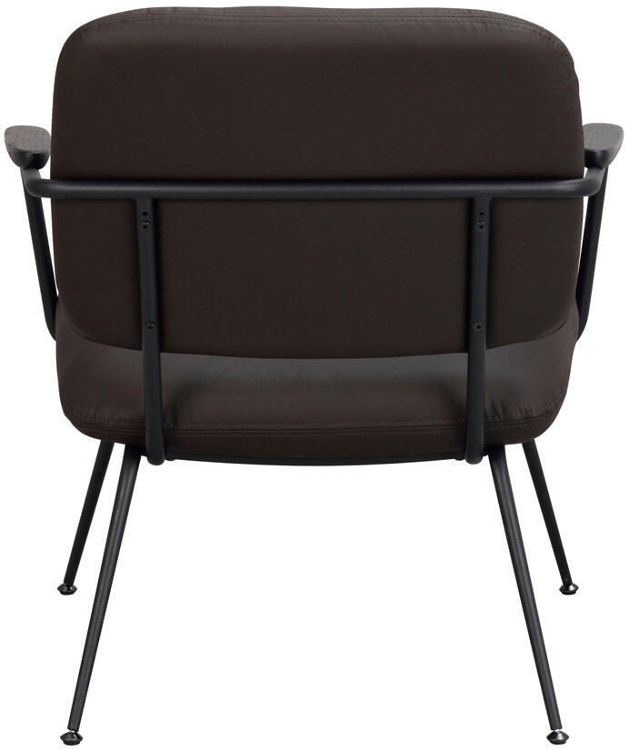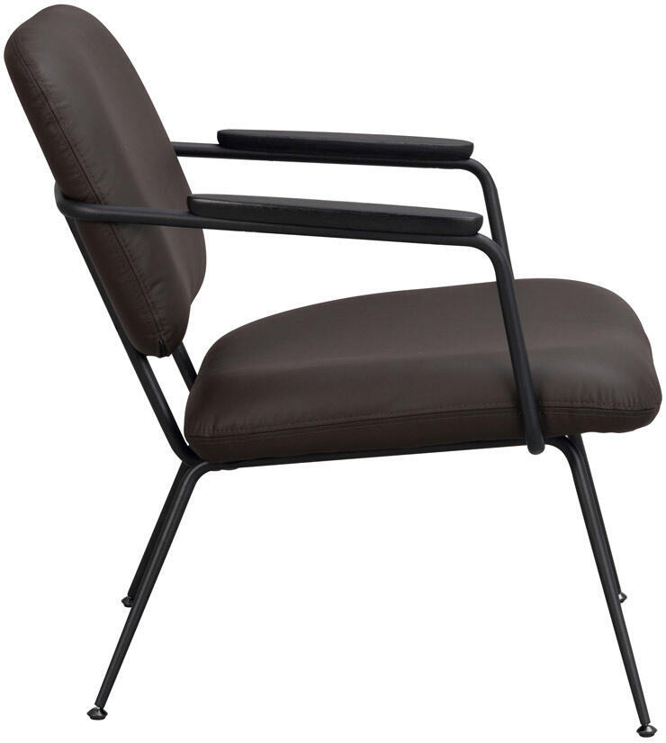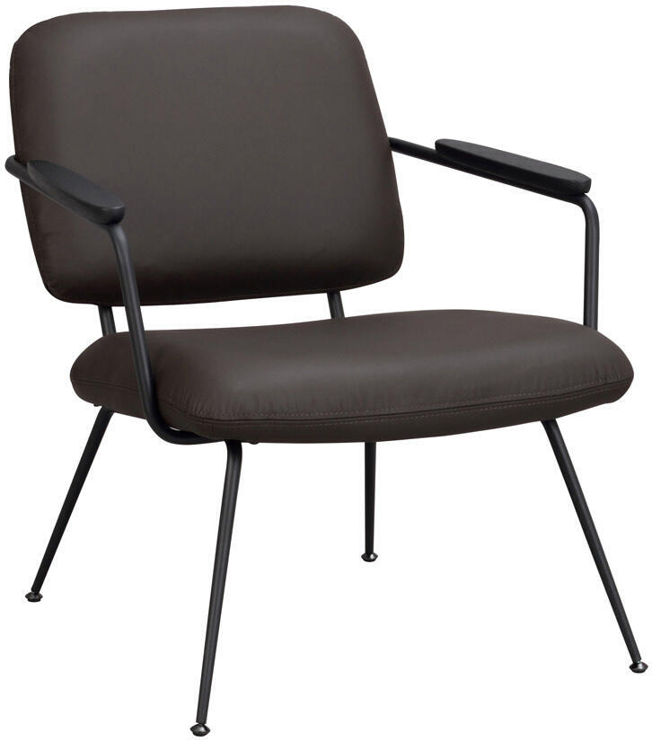 Prescott är en skön och trendig loungestol i brunt läder med svarta metallben och armstöd i svartlackad ek. Stolen har hög sittkomfort och en rymlig sittyta. Prescott har svarta justerbara fötter vilket gör den väldigt stabil oavsett underlag. Prescott loungestol passar utmärkt som udda stol i sovrummet, vardagsrummet eller hallen. Maxvikt: 110 kg.