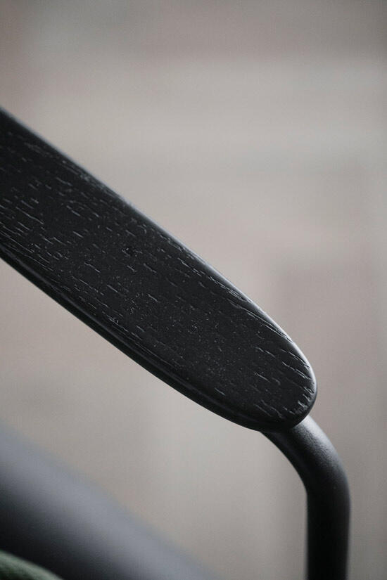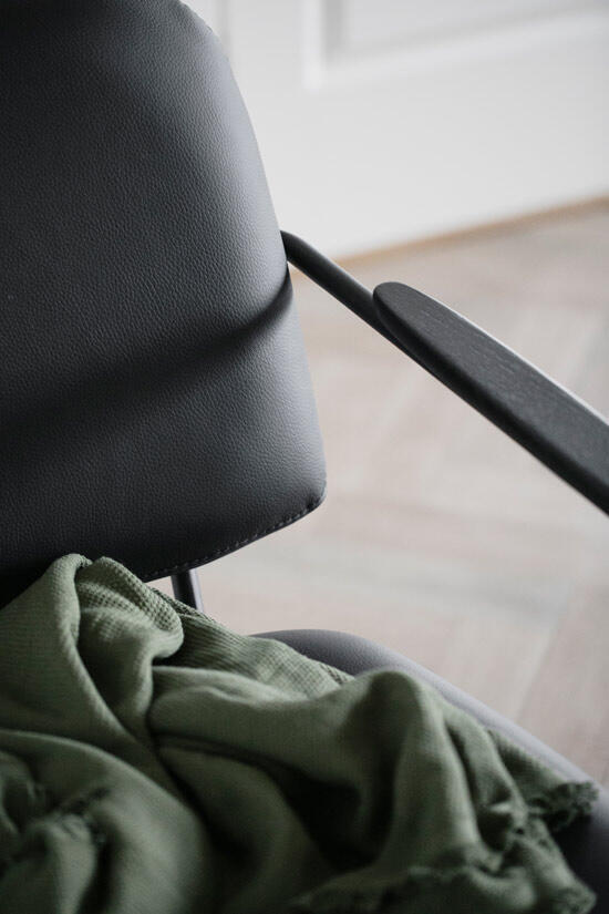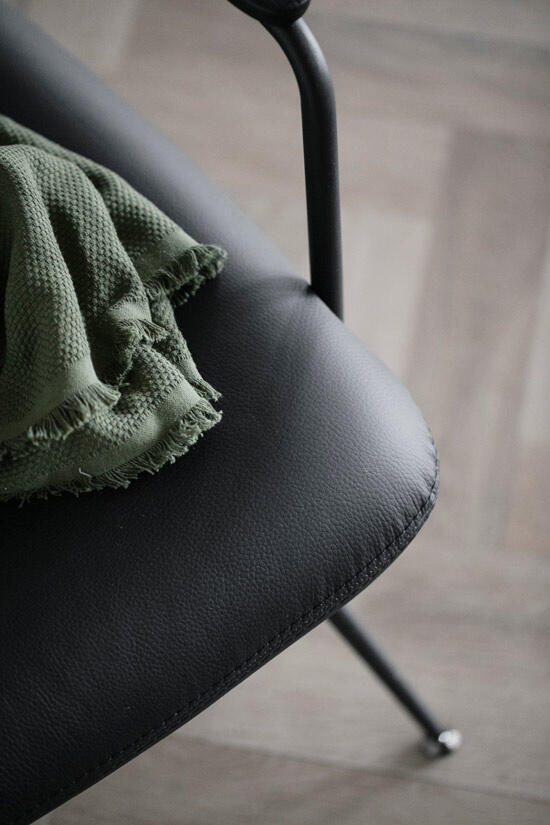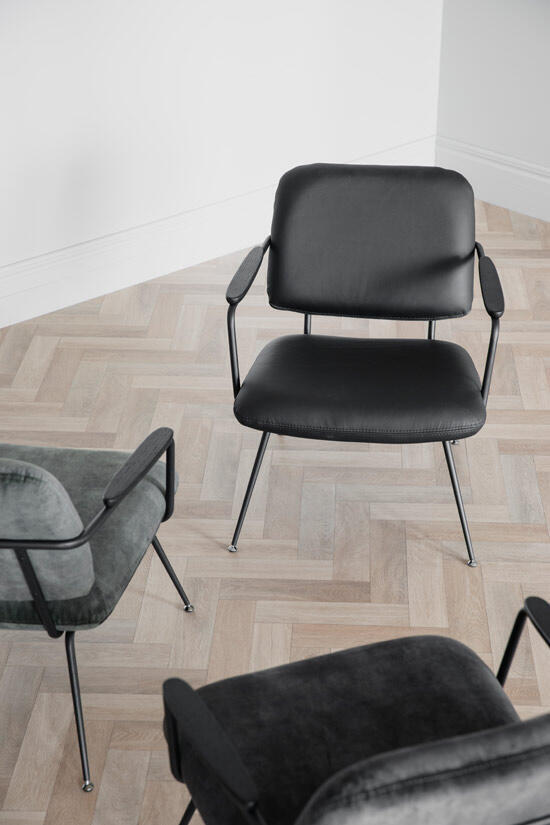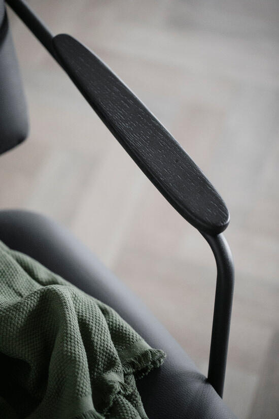 Stoppad sits och rygg, klädd med riktigt läder. Stomme i pulverlackad metall i sandstruktur, och armstöd i massiv ek ...