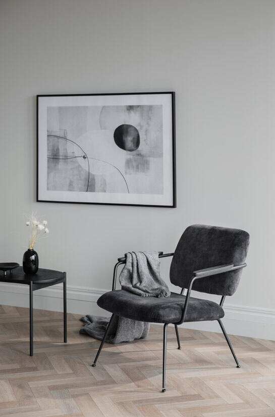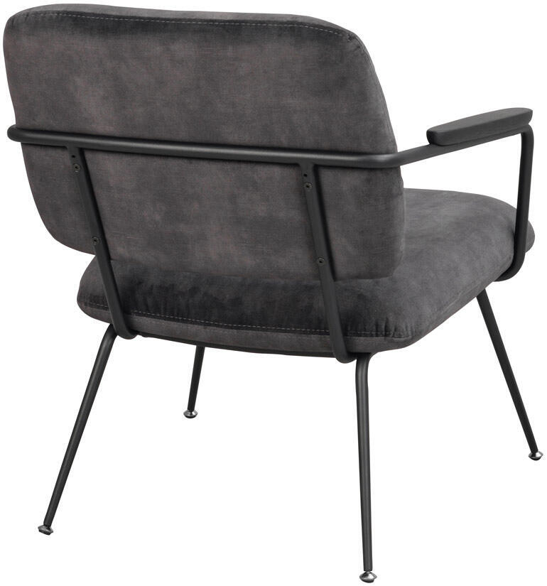 Prescott är en skön och trendig loungestol i grå sammet med svarta metallben och armstöd i svartlackad ek. Stolen har hög sittkomfort och en rymlig sittyta. Prescott har svarta justerbara fötter vilket gör den väldigt stabil oavsett underlag. Prescott loungestol passar utmärkt som udda stol i sovrummet, vardagsrummet eller hallen. Maxvikt: 110 kg.