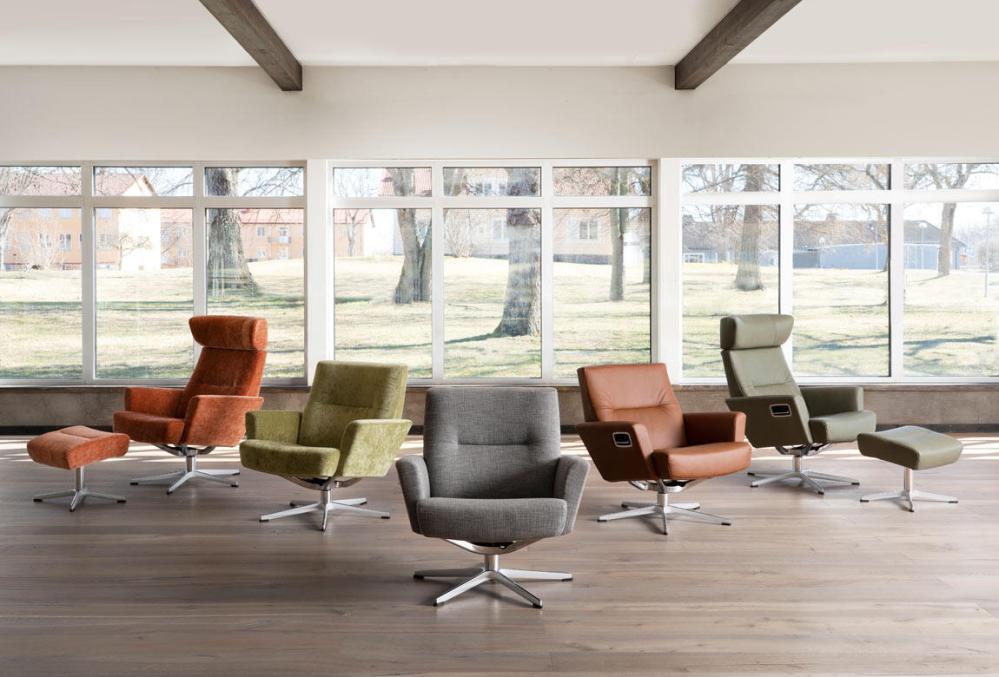 Alla delar i fåtöljserien Relieve från svenska varumärket Conform hittar du en bit ner på sidan under Liknande produkter. Information om läder och tygklädslar hittar du som nedladdningsbara produktblad.