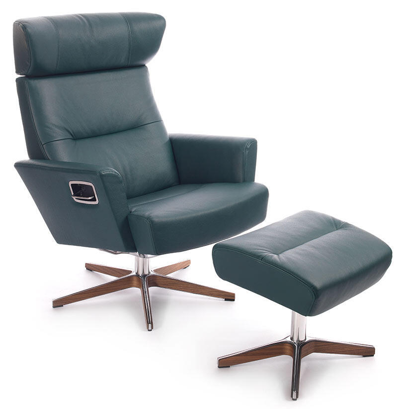 - Läder Bolzano Teal med Swivel aluminium/trä fot, valnöt
