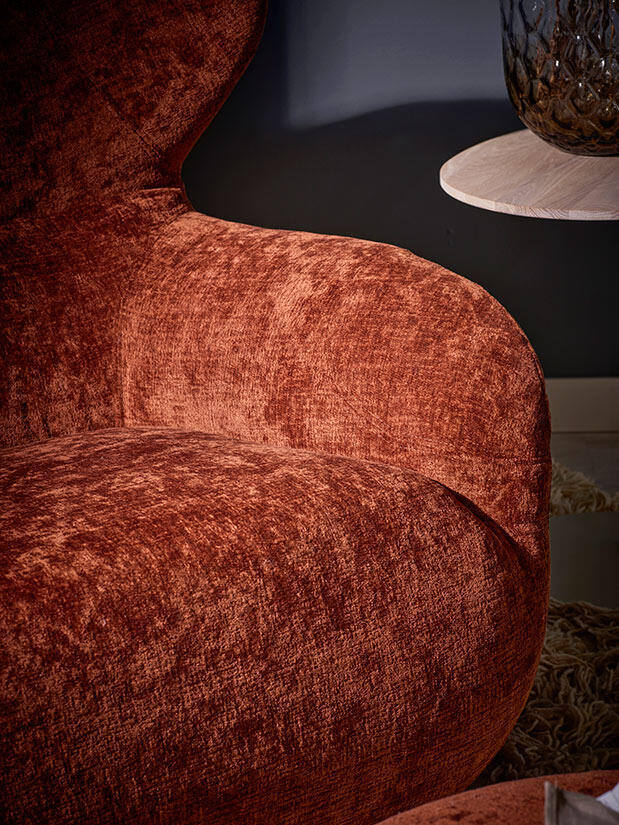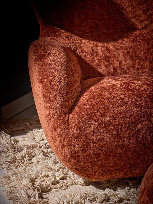 Fåtöljen finns att välja i flera tyger och läder. Levereras med snurrfot av svartlackad metall som verkligen bidrar till fåtöljens funktionalitet då du kan rotera 360 grader.