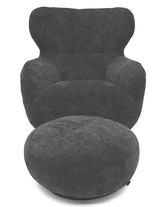 Fotpallen som ingår i priset har en vacker design som påminner om en perfekt rundad och formad strandsten som kompletterar fåtöljen på ett fint sätt. Pallen bidrar även till extra hög komfort då du kan vila benen på den.