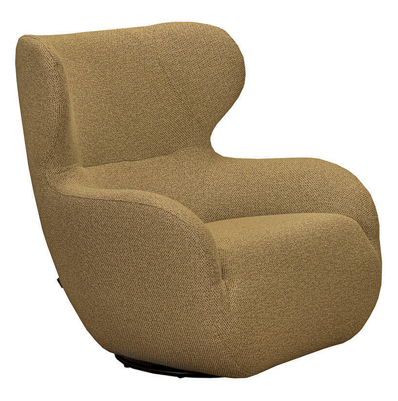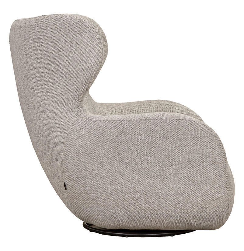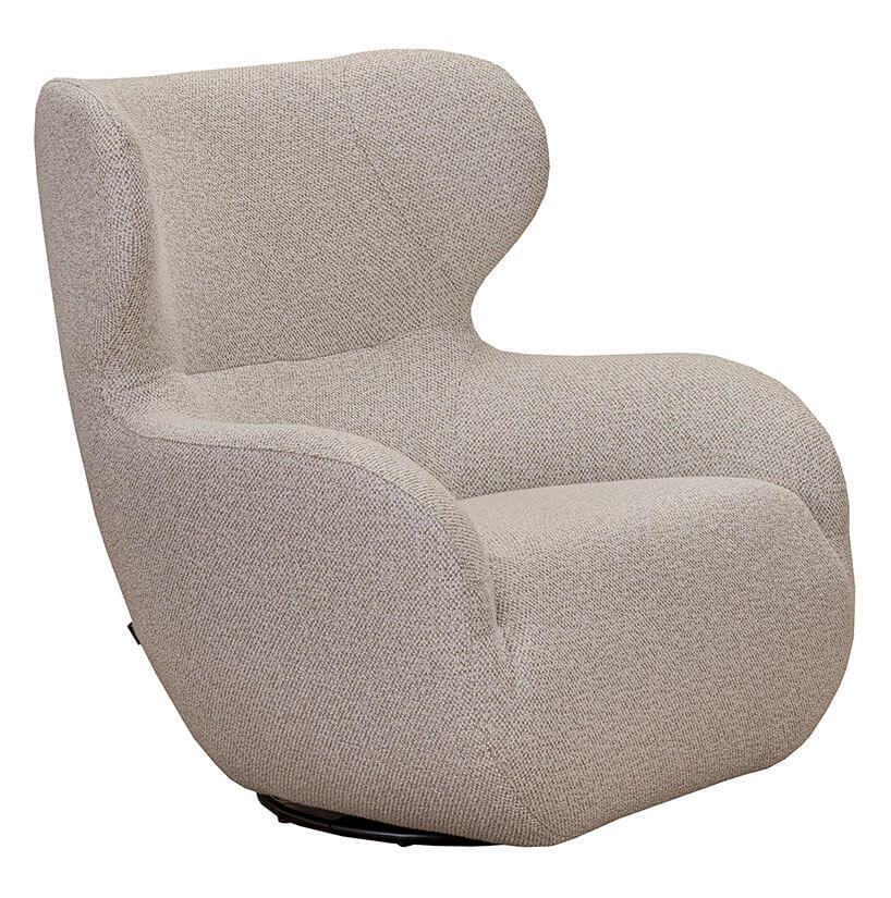 Fåtöljen finns att välja i flera tyger och läder. Levereras med snurrfot av svartlackad metall som verkligen bidrar till fåtöljens funktionalitet då du kan rotera 360 grader.