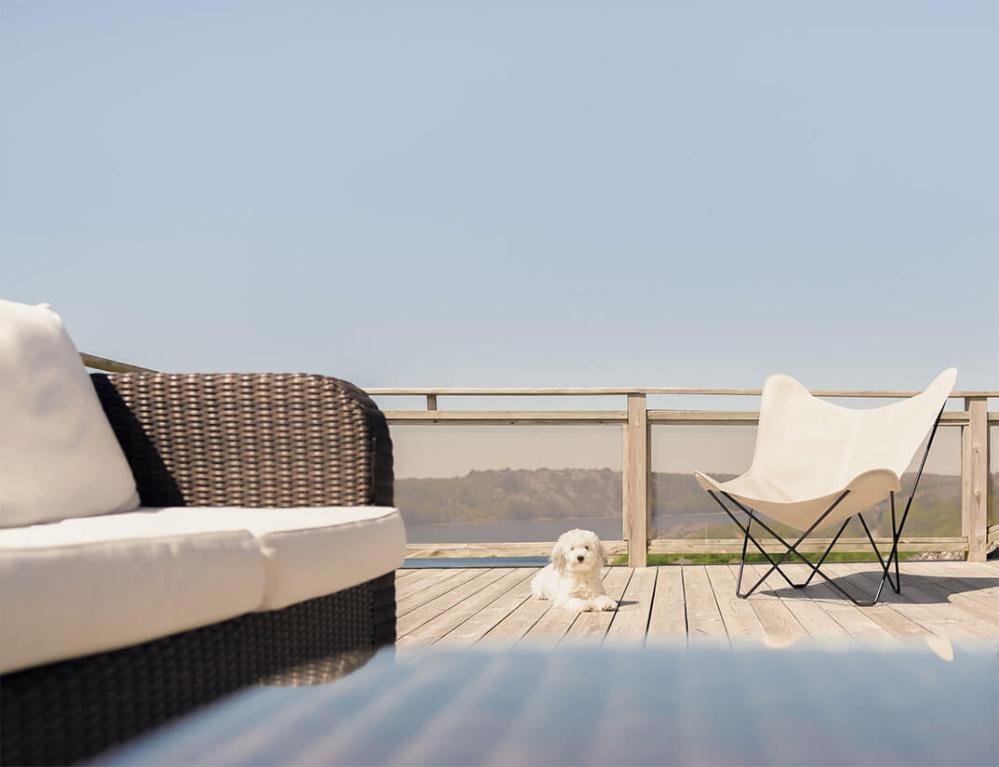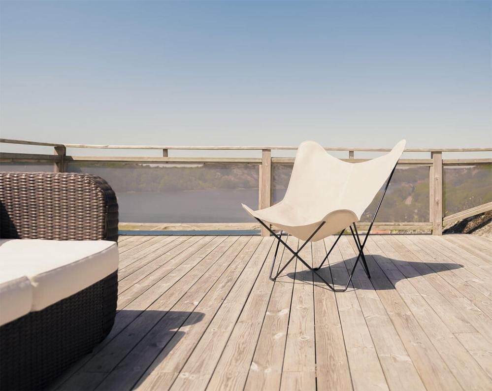 Sunshine Mariposa kan fås tillsammans med flera olika stativ. Svartlackerat stål och Mattkromat stål är anpassat för inomhusbruk medans Svart för utomhusbruk är just det, anpassat för att användas i trädgården, stranden eller på altanen. Med ett stativ utformat för uteplatsen och det slitstarka Sunbrella tyget får du en fåtölj som håller med åren även utomhus!