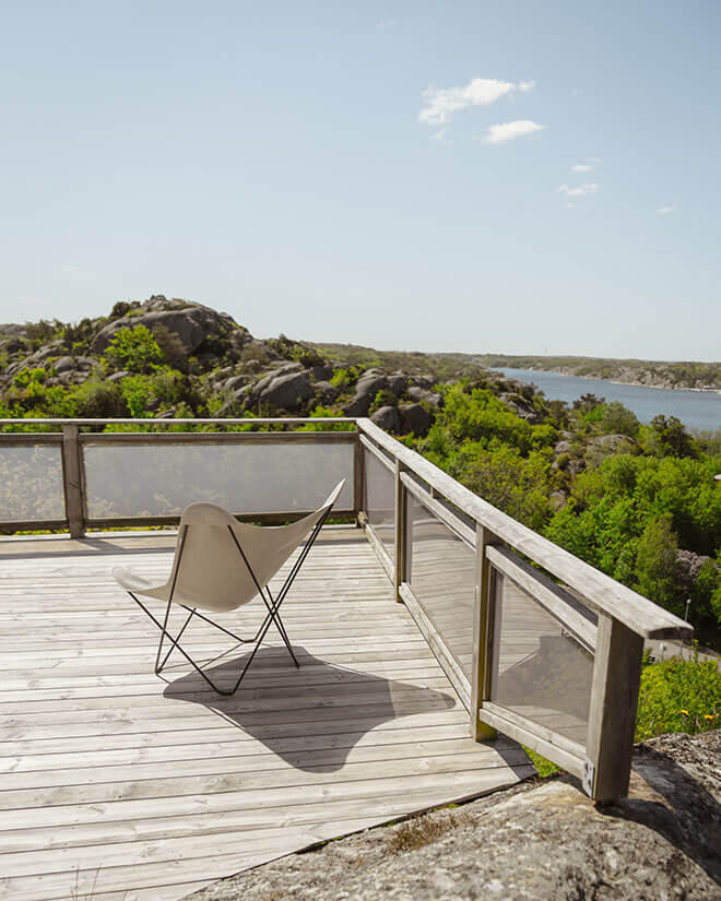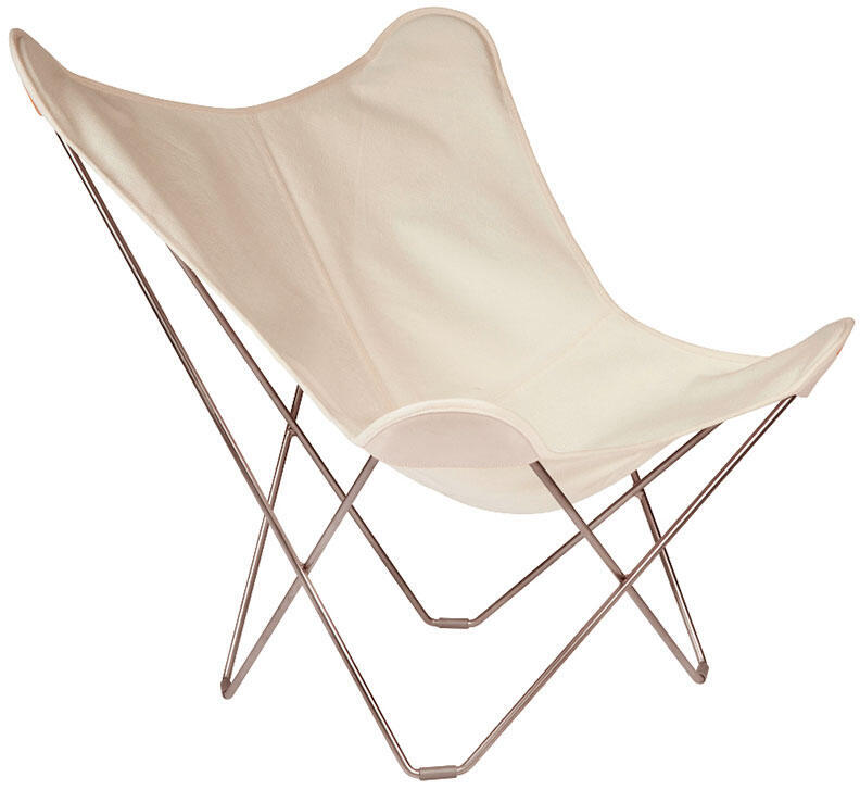 Den här modellen som heter "Sunshine Mariposa" smyckas med ett extremt tåligt Sunbrella Plus tyg som bland annat används till de allra bästa båtkapellen för att skydda dess färg mot solens starka strålar. Ett Sunbrella tyg håller sin färg med åren. Fåtöljen kan även fås med annan klädsel så som i tjockt italienskt vegetabiliskt garvat läder, äkta isländska lammskinn eller ett canvastyg av 100% bomull. Välj den klädsel och underrede som passar dig och din stil i hemmet bäst, alla modeller finns en bit ner på sidan under liknande produkter.