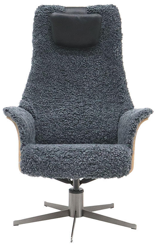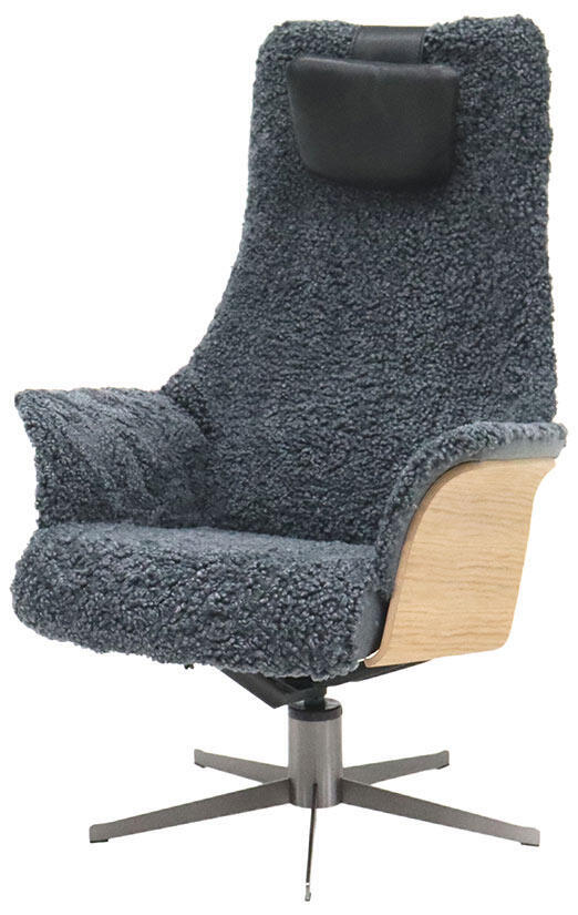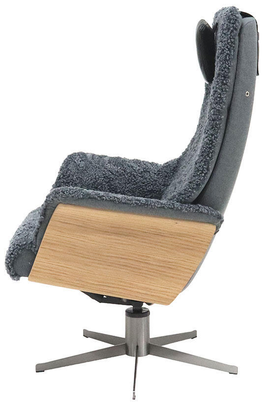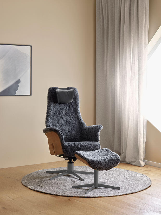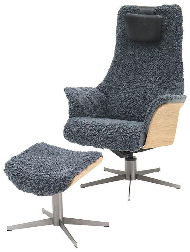 Det här utvalda utförandet är i grått fårskinn från Skinnwille med träsidor i oljad ek och fot Elegance i borstad stål.