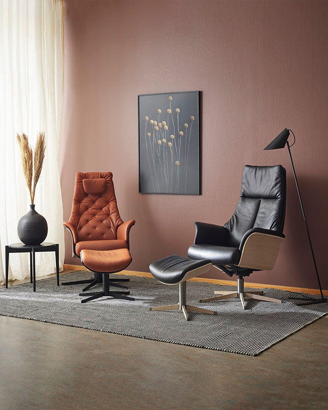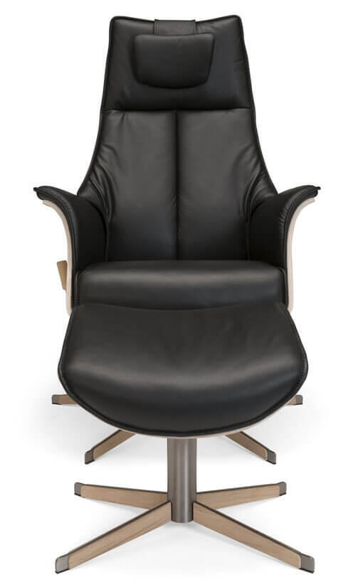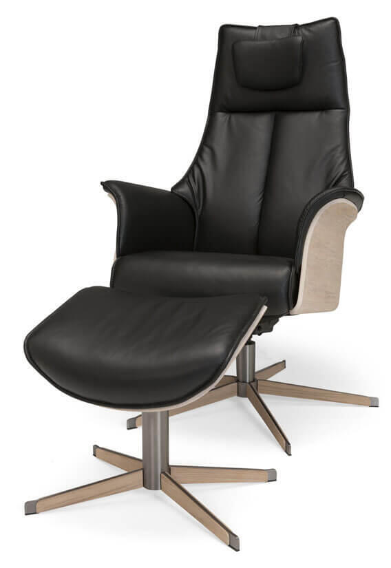 Fåtölj Vellino med tidlöst uttryck på ett modernt sätt. Härlig komfort med steglös lutning för en skön upplevelse. Nackvinkel justeras manuellt. Pris inklusive fotpall.