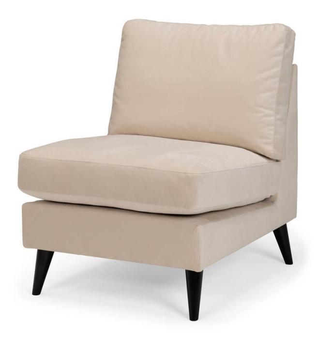 Denna modell: Smal fåtölj (N) med tygklädda sidor i tyg Seven. På produktbilden visas fåtöljen i färg 334/01 Nature med svarta träben.