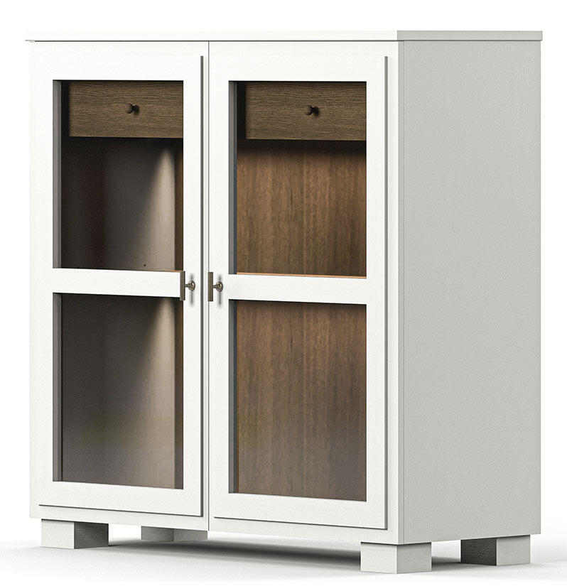 Englesson Camden Hög 2 glasdörrar + 1 låda White Skänk / Underskåp med belysning