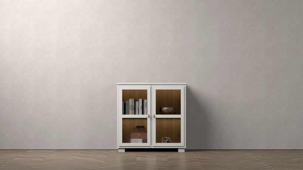 2 glasdörrar med 1 hylla och integrerad dimbar LED-belysning
