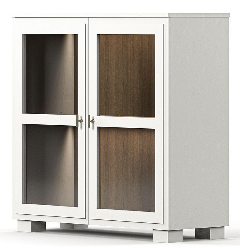 Camden Hög 2 glasdörrar Burned Walnut White Skänk / Överskåp med belysning