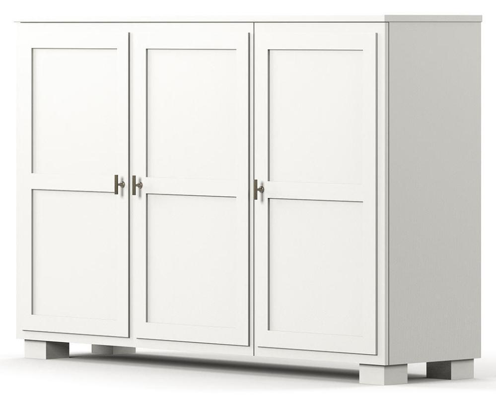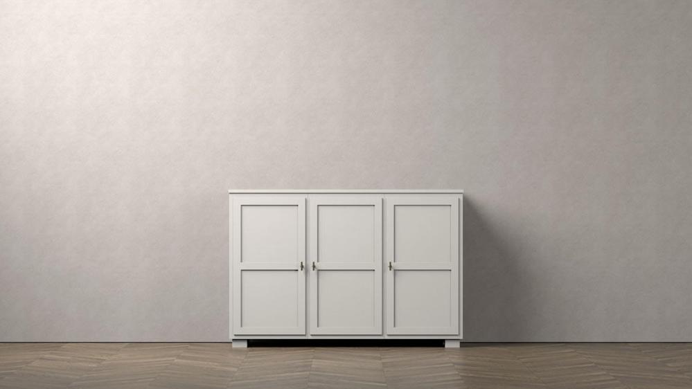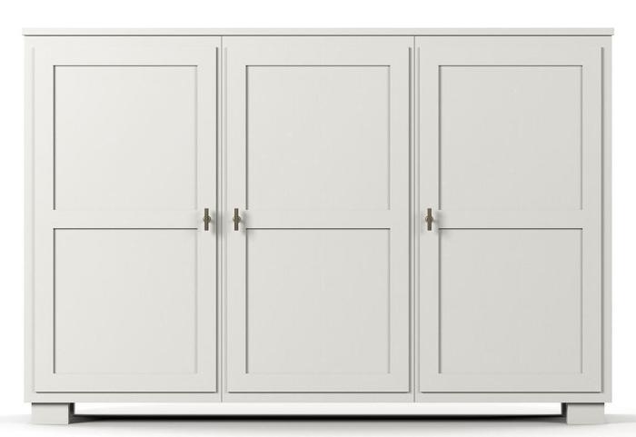 Camden hög skänk med 3 trädörrar kombinerar stil och praktisk förvaring i en elegant design. Hela möbeln är handmålad med en strukturerad finish som ger ett inarbetat och sofistikerat uttryck. Bakom de två dörrarna till vänster finns två justerbara hyllor, medan dörren längst till höger döljer ytterligare två justerbara hyllor, vilket ger flexibilitet för att anpassa förvaringen efter behov.