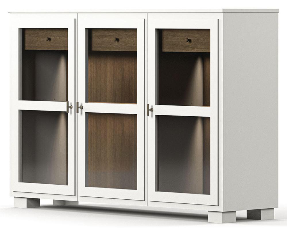 Englesson Camden 2+2 dörrar + 1 låda Burned Walnut White Vitrinskåp med belysning