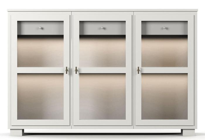 3 glasdörrar med 1+1 hyllor, 1+1 lådor och integrerad dimbar LED-belysning