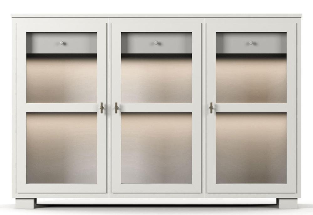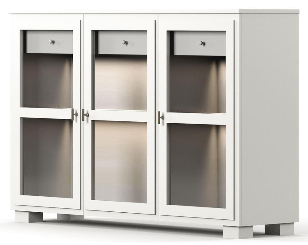 Camden Hög 3 glasdörrar + 1+1 låda White Skänk / Underskåp med belysning