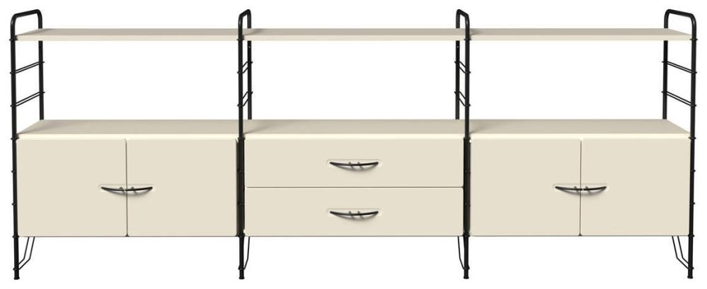 Dakota har en stilren kombination av mattsvart pulverlackade golvgavlar i två höjder med hyllplan, arbetsskiva och insatser i tre vackra nyanser; Cream White, Forest Green och Shadow Black. Sammansättningen av svarta gavlar och en av de stilrena lackfärgerna ger Dakota ett utseende som är vacker idag och långt fram i tiden.