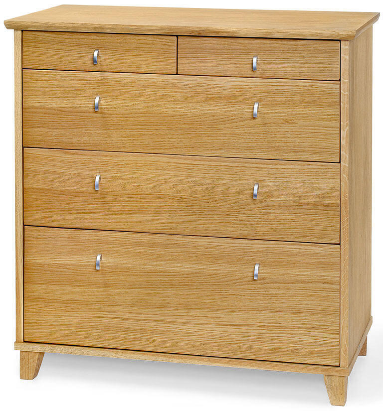 Byrån Ekliden med fem lådor är en robust och praktisk förvaringsmöbel som rymmer allt från det lilla till det stora i de rymliga lådorna. För att ge optimal möjlighet att anpassa förvaringen har byrån två mindre lådor, två mellanstora och en större låda. Den tidlösa byrån som passar såväl hallen som sovrummet är tillverkad av fanérad och massiv ek som sedan behandlats med naturell olja som ger den sin fina och tåliga finish. Byrån levereras färdigmonterad direkt från fabrik.