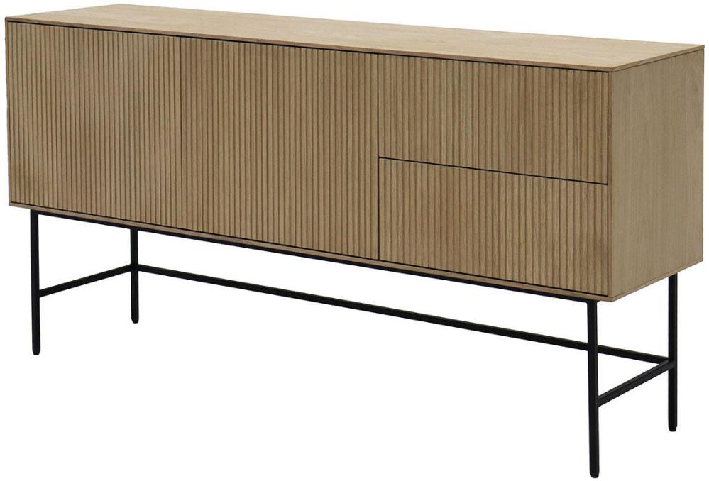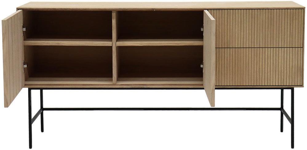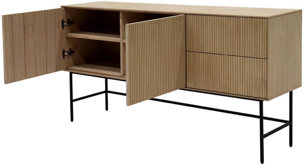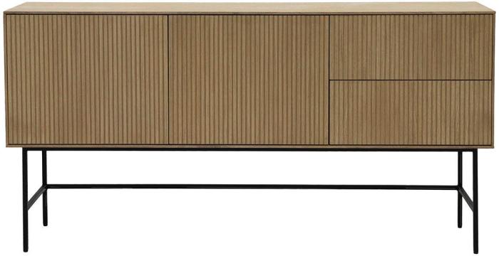 Elma är en bred förvaringsserie som bland annat innehåller det här sideboardet. Sideboardet har två dörrar med varsitt justerbart hyllplan och två lådor med full utdrag. Dörrar och lådor har praktisk pushfunktion för att enkelt kunna öppnas och stängas. Kombinationen av luckor och lådor ger goda förvaringsmöjligheter som kommer väl till pass i en skänk som passar i de flesta rummen och miljöer.