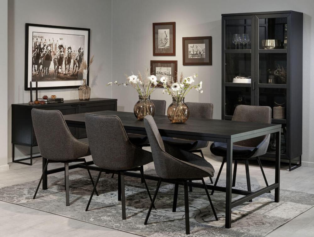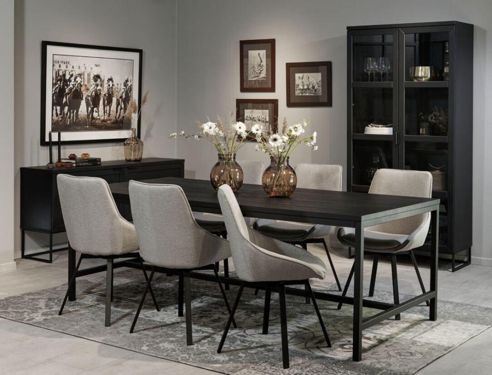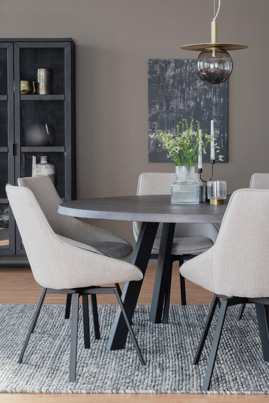 Matbordet syns ofta tillsammans med den populära stolen Alison. Stolen har blivit en favorit hos många, tack vare sitt slitstarka tyg, sköna komfort och snurrbara underrede.