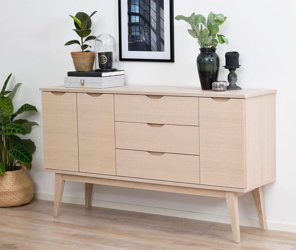 Filippa är ett stilrent stilrent sideboard med generös förvaring. Skåpet är i vitpigmenterad ek och har rymliga lådor och skåp med dämpande stängning. Benen är lätt utställda vilket ger ett modernt uttryck.