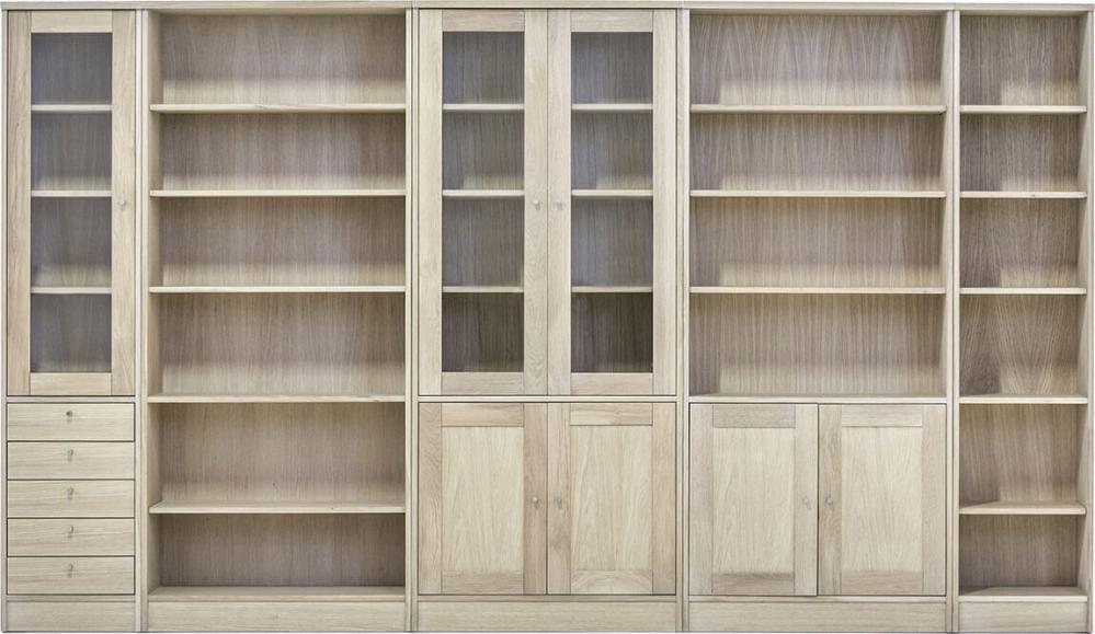 Garda modulbokhylla är en byggbar kollektion bokhyllor med olika funktioner och egenskaper. I serien finns fem olika moduler som kan användas för sig eller ihop med andra delar för att fylla en hel vägg. Förvaringsmöbeln är tillverkad av fanérad och vitoljad massiv ek, små stilrena handtag av aluminium. Alla delar levereras färdigmonterade direkt från fabrik.