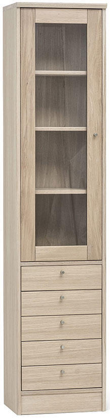 - G1 är ett smalt vitrin med lådor. Glasdörr med ett fast och två flyttbara hyllplan. Underdel med fem stycken lådor.