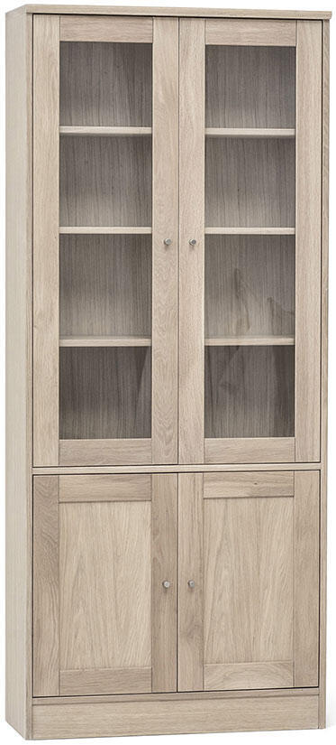 - G7 är ett brett vitrinskåp med ett dörrpar av glas och ett av trä. Ovandel med en fast och två flyttbara hyllplan och en underdel med en justerbar hylla.