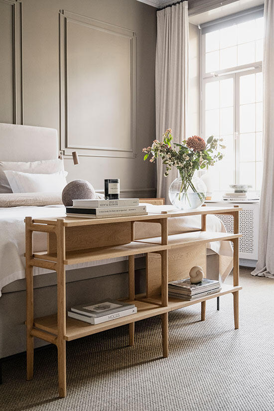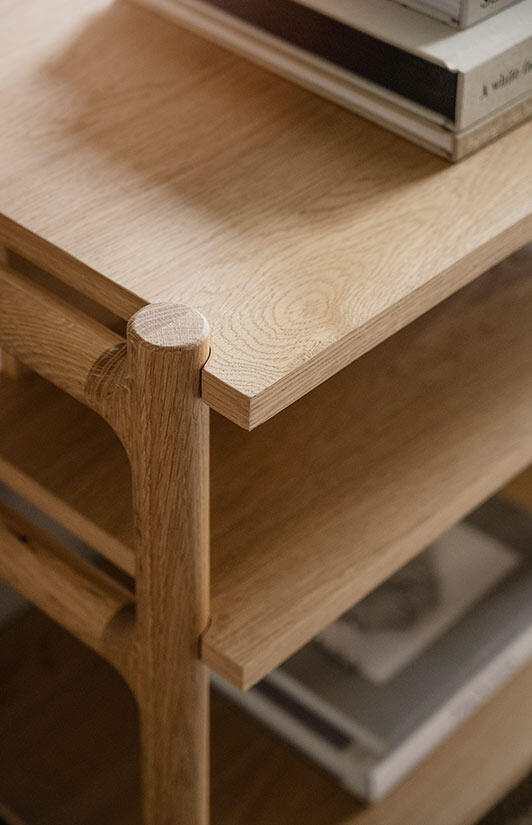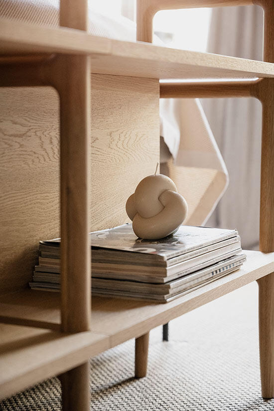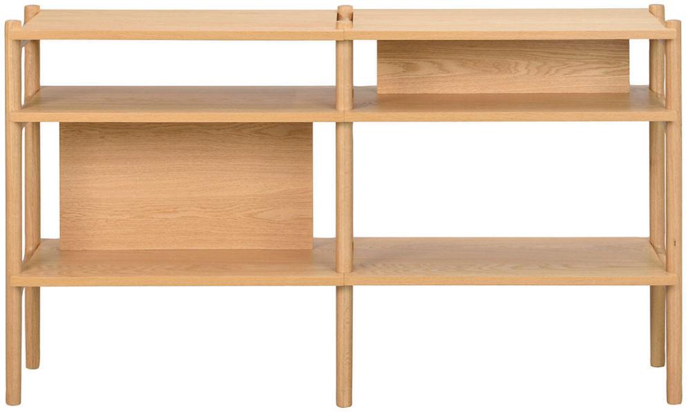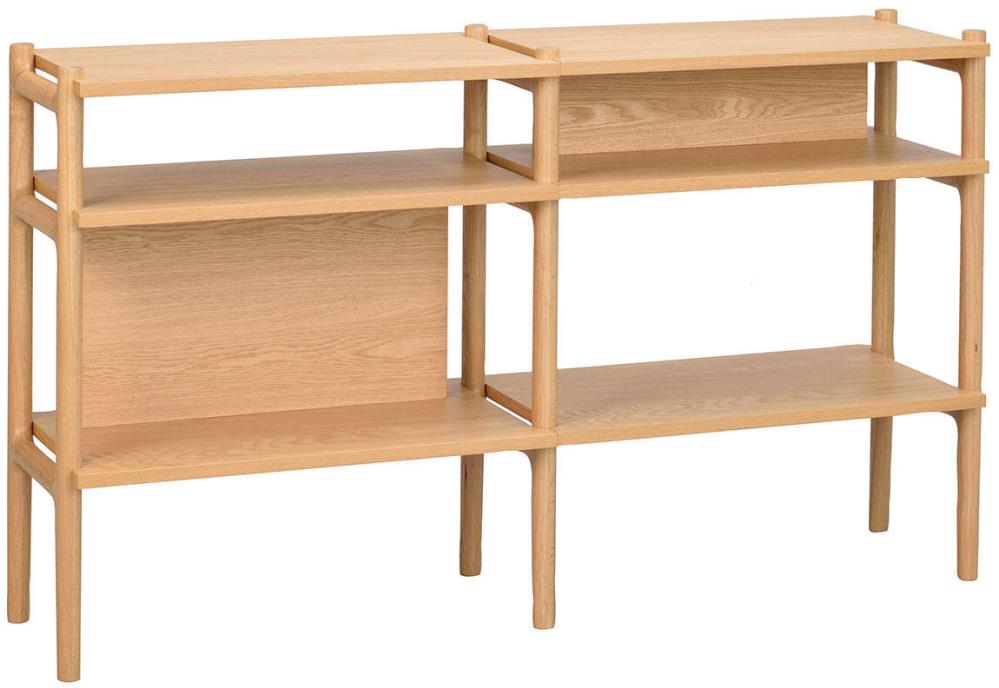 Holton avlastningsbord i storleken 140x80 cm har sex hyllplan i ekfaner och massiva formsvarvade gavlar. Holton är en välarbetad hyllserie i nordisk design som rymmer mycket förvaring. Den fungerar också som en praktisk rumsavdelare och finns även som större bokhylla, vilken hittas en bit ner på sidan under Liknande produkter. I möbelserien Holton från Rowico hittas även snygga soffbord.