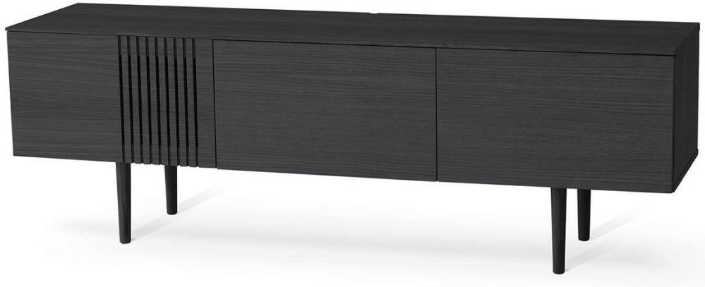 Joel har totalt tre stycken luckor där ena har fina ribbor som förgyller designen. Bakom varje dörr finns ett hyllplan. TV-bänken levereras med ben som du själv väljer om du vill använda, bänken kan nämligen både ställas på golvet med benen såväl som hängas på väggen. Väljer du att hänga mediabänken på väggen får du ett något luftigare intryck. Joel bänk 150 cm är tillverkad av fanerad ek med en ytbehandling av svartbets med ett ytskikt av mattlack alternativt rökolja eller vitolja.