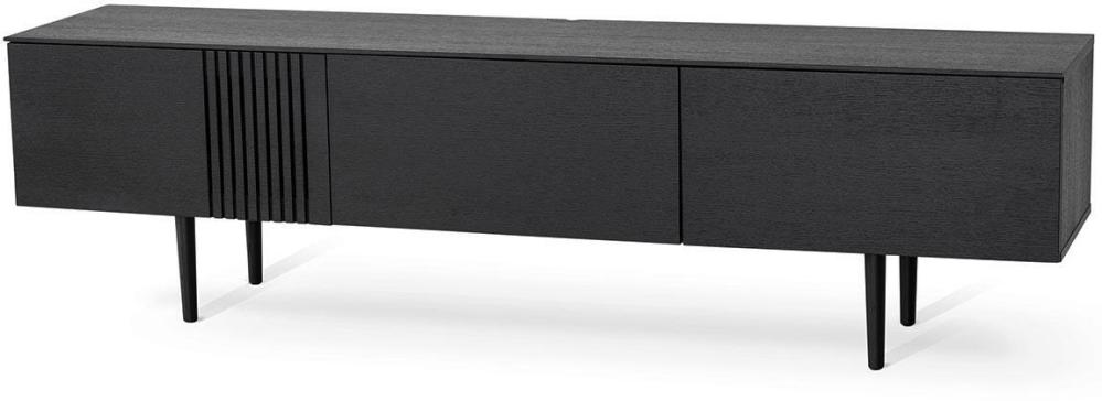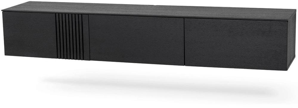 Joel har totalt tre stycken luckor där ena har fina ribbor som förgyller designen. Bakom varje dörr finns ett hyllplan. TV-bänken levereras med ben som du själv väljer om du vill använda, bänken kan nämligen både ställas på golvet med benen såväl som hängas på väggen. Väljer du att hänga mediabänken på väggen får du ett något luftigare intryck. Joel bänk 180 cm är tillverkad av fanerad ek med en ytbehandling av svartbets med ett ytskikt av mattlack alternativt rökolja eller vitolja.
