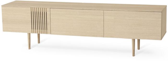 Formgivningen av mediabänken Joel är både vacker och genomtänkt, med stora utrymmen för praktisk förvaring får du en möbel som slukar många saker och samtidigt en möbel att skåda med ögonen.