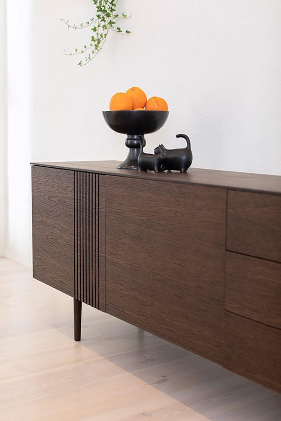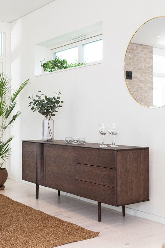 Sideboardet är tillverkad i kvalitativ fanérad rökoljad ek. Förvaringsmöbeln ingår i serien Joel från Torkelson, du hittar alla delar i serien en bit ner på sidan under Liknande produkter.