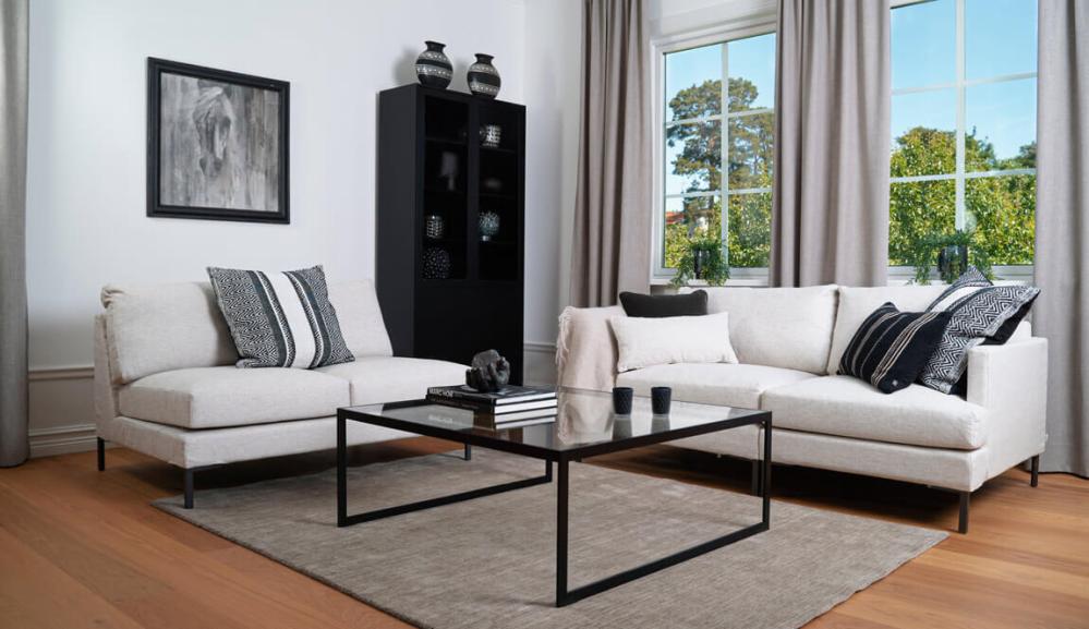 Genom att välja benställning i valfri färg anpassas möbeln lätt till din hemmiljö. Hela serien förutom matbordet levereras monterade, det är endast benställningen som ska skruvas fast i förborrade hål i möbelns underkant. Det nätta sängbordet och den 6-lådiga byrån hängs direkt på väggen, det vill säga helt utan ben. Serien Line är handmålad och kommer i två valbara färger: White och Black.
