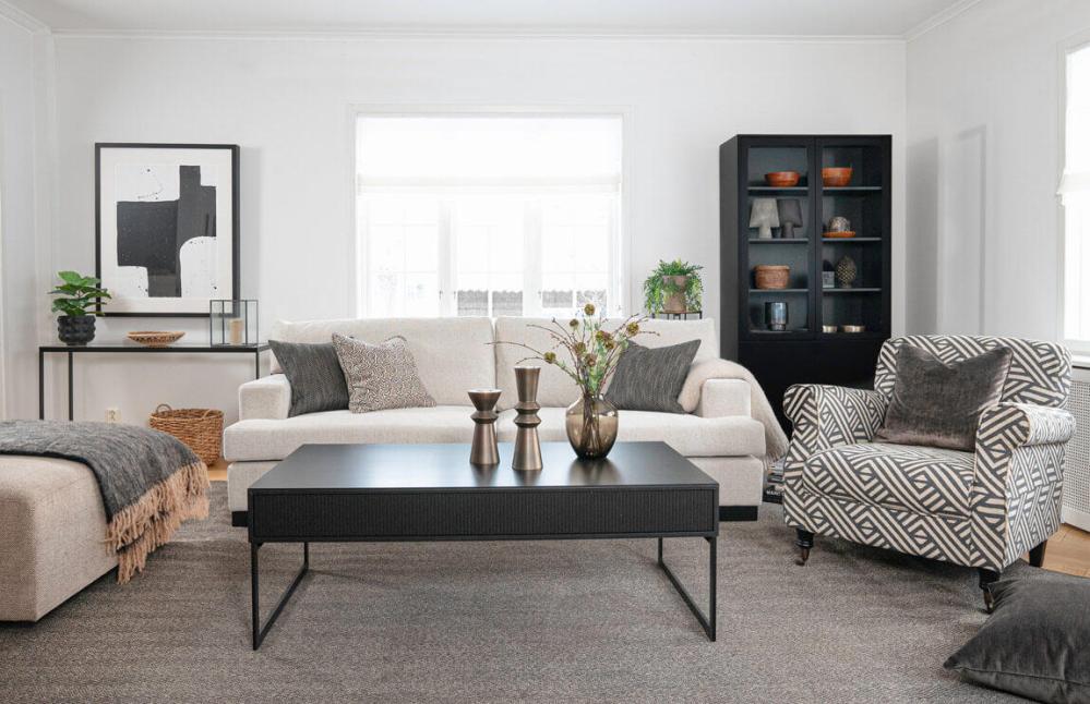 Line finns nu även i utförandet Burned Walnut - fronter i valnötsbetsad ekfanér med sidor i svart eller vit. Överdelen ackompanjeras med benställning eller sockel.