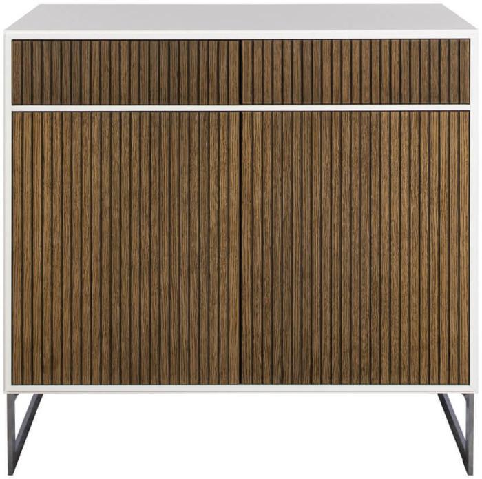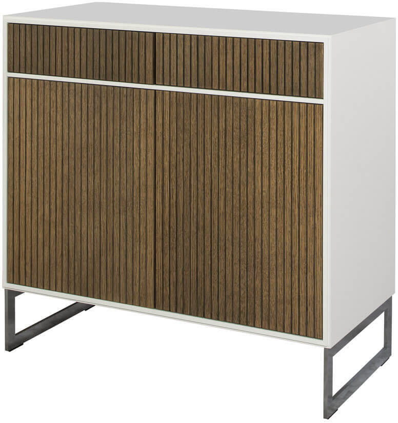 I möbelserien Line från Englesson finns flera olika förvaringsmöbler, alla har samma eleganta moderna design med tålig handmålad MDF i vit eller svart som matchas tillsammans med det stabila järnunderredet i krom eller svart, det här utförandet har dessutom fronter i valnötsbetsad ekfanér för en exklusiv look.