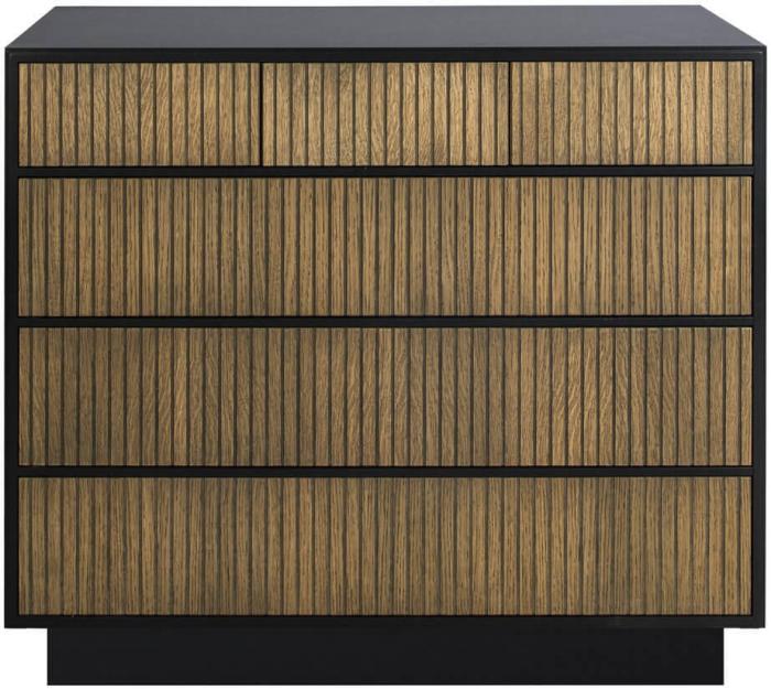 Line finns nu även i utförandet Burned Walnut - fronter i valnötsbetsad ekfanér med sidor i svart eller vit. Överdelen ackompanjeras med benställning eller sockel.