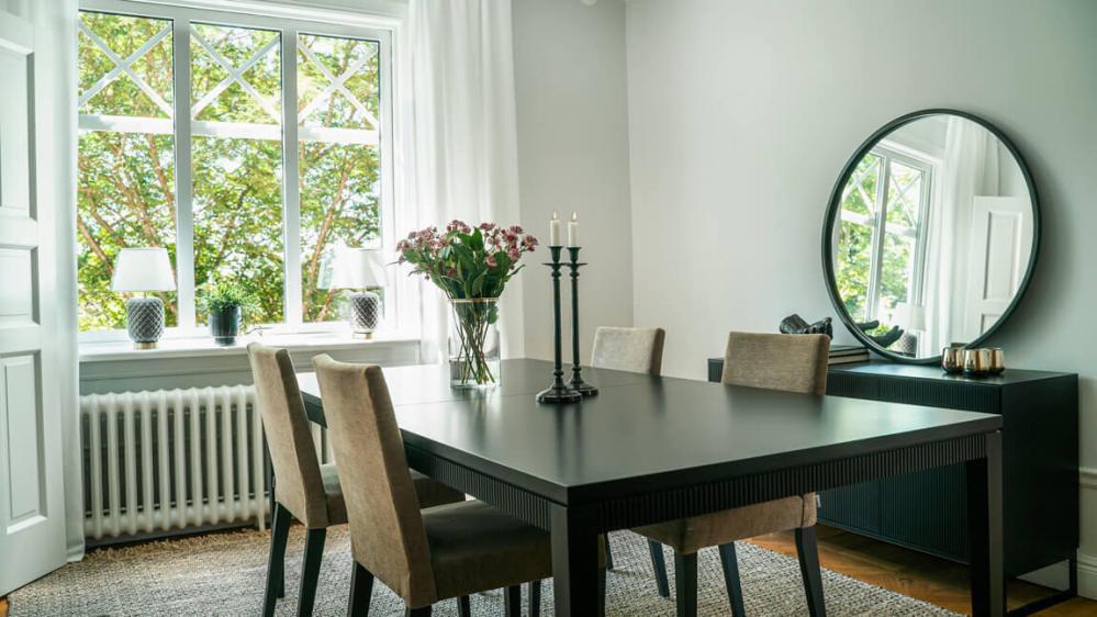 MDF och förkromat eller svart sprutlackat metallunderrede