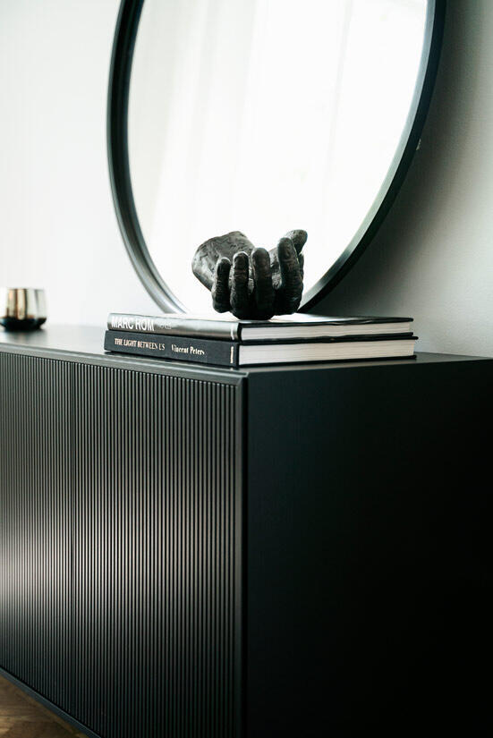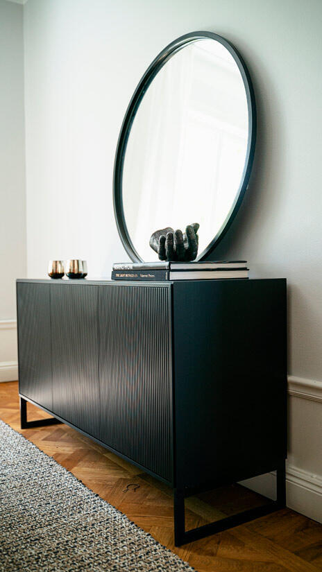 I möbelserien Line från Englesson finns flera olika förvaringsmöbler, alla har samma eleganta moderna design med tålig handmålad MDF i vit eller svart som matchas tillsammans med det stabila järnunderredet i krom eller svart.
