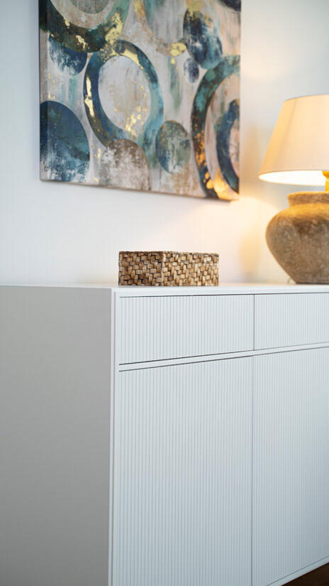 I möbelserien Line från Englesson finns flera olika förvaringsmöbler, alla har samma eleganta moderna design med tålig handmålad MDF i vit eller svart som matchas tillsammans med det stabila järnunderredet i krom eller svart.